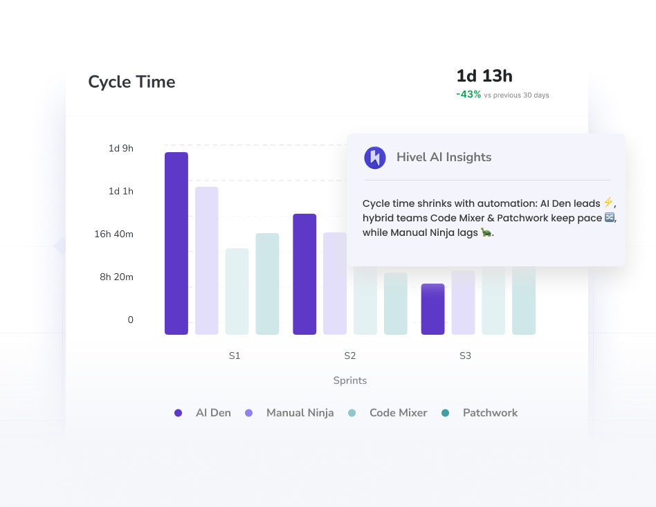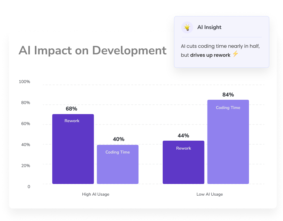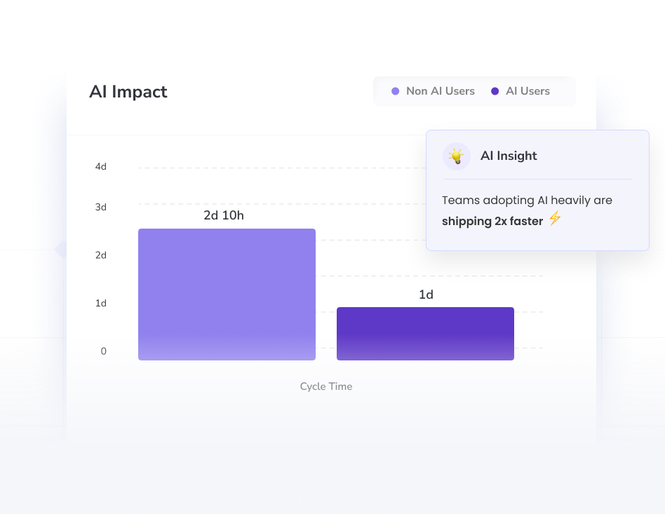 Correlate AI adoption directly with speed, quality, and throughput that matter to the business.