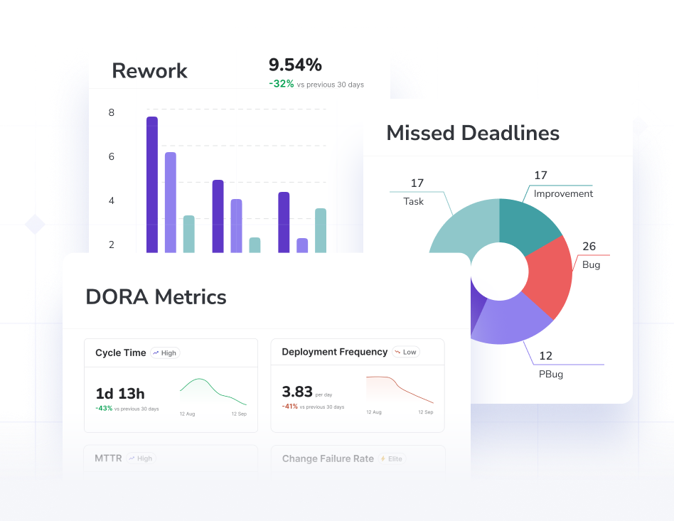 Full-SDLC analytics turn raw activity into root causes, forecasts, and executive views that tightly align engineering with business.
