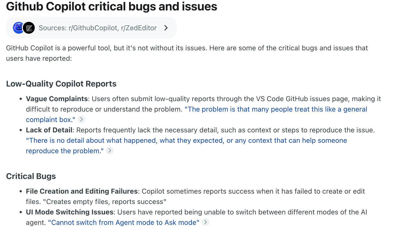 - Copilot sometimes creates empty files or fails to make the requested changes