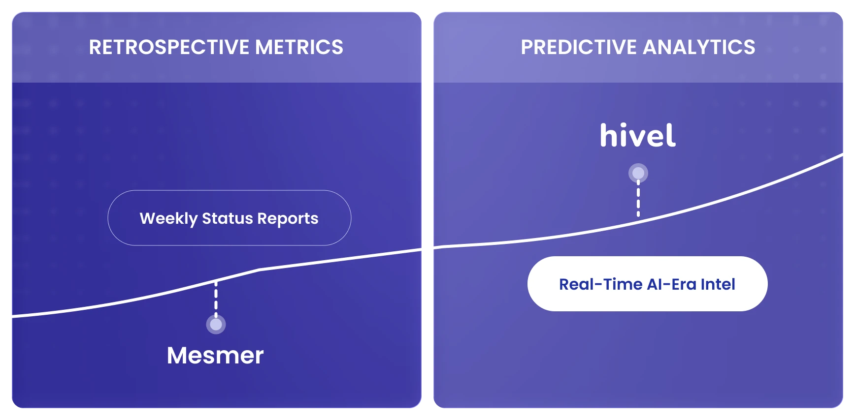 Mesmer delivers weekly status reports for small startup teams. Hivel gives CTOs managing thousands of developers DORA metrics, AI impact tracking, and board-ready ROI.