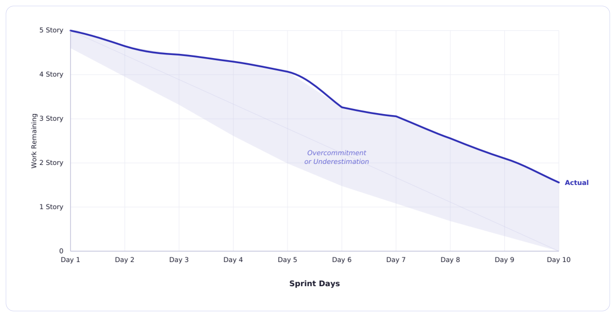 4. Actual Burn Line - The real-time line showing how work is actually being completed.