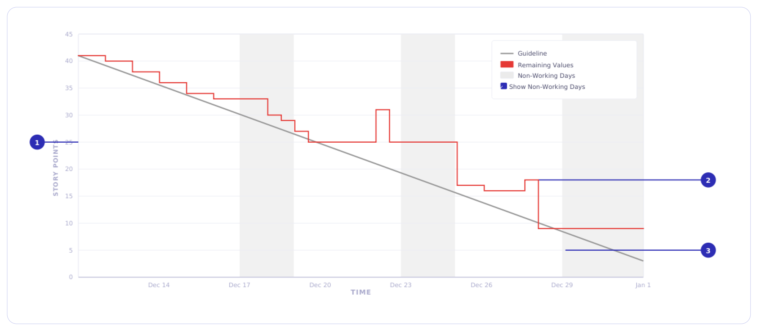 1. Time Axis (X-Axis) - Represents the sprint or release timeline.