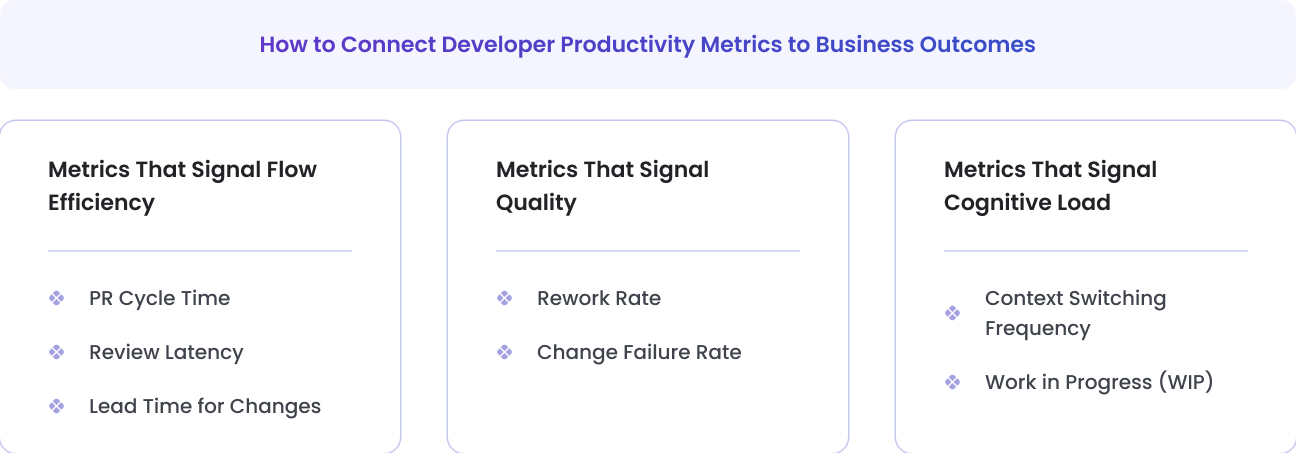 High-signal developer productivity metrics span flow, quality, and cognitive sustainability , not just speed.