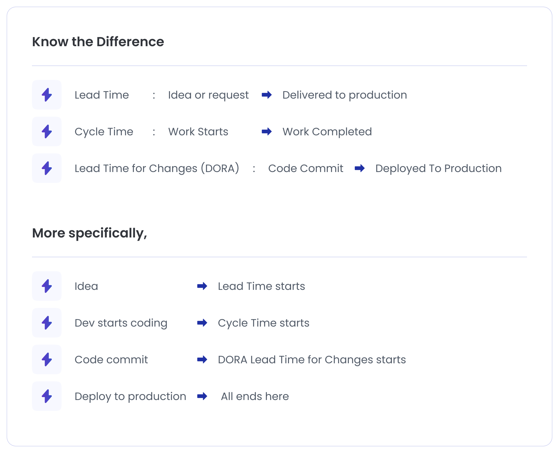 Each metric looks at a different part of the delivery process. Some measure speed, while others measure stability.