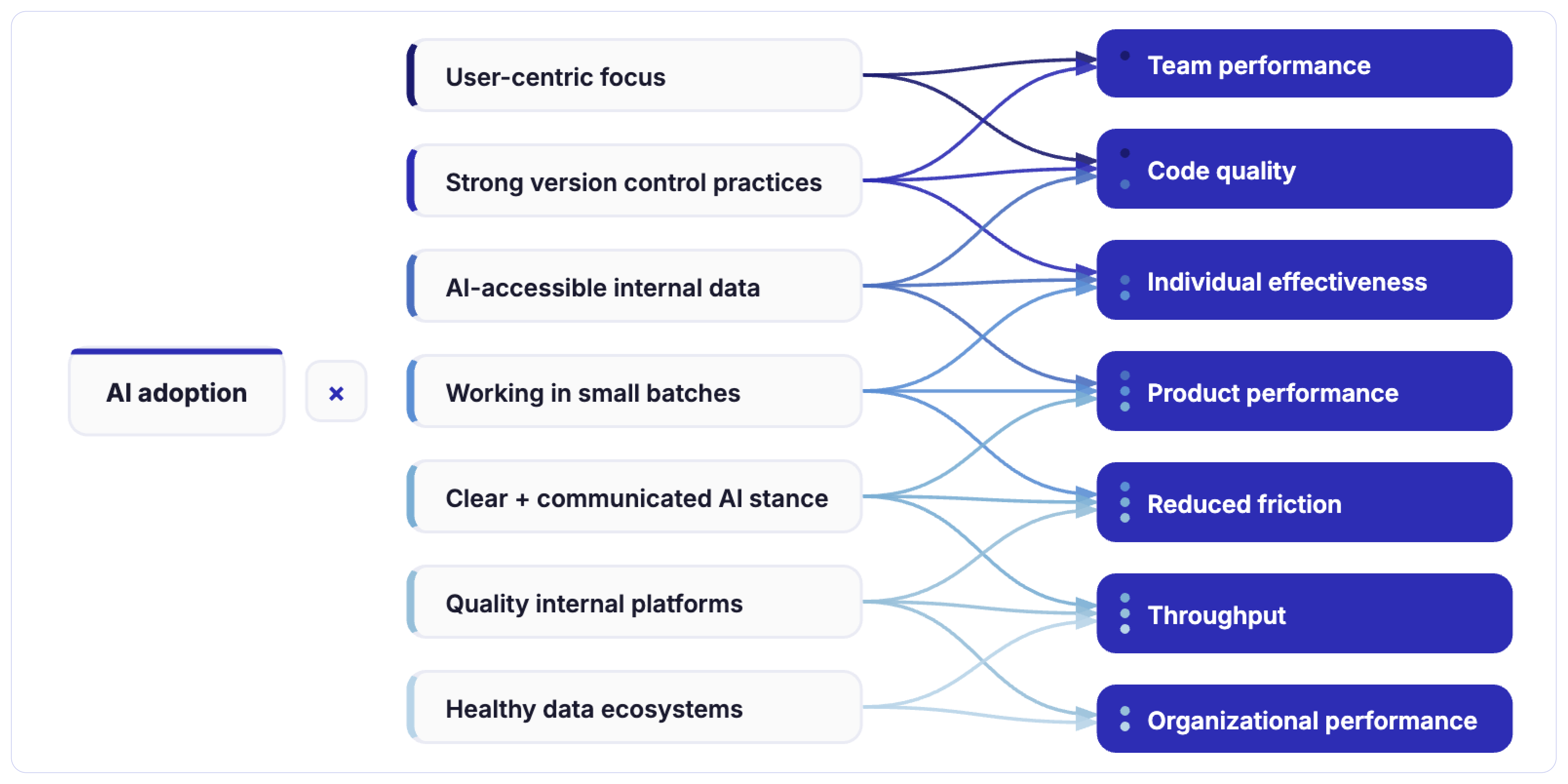 When these capabilities exist, AI amplifies productivity, improves product outcomes, and increases organizational performance.